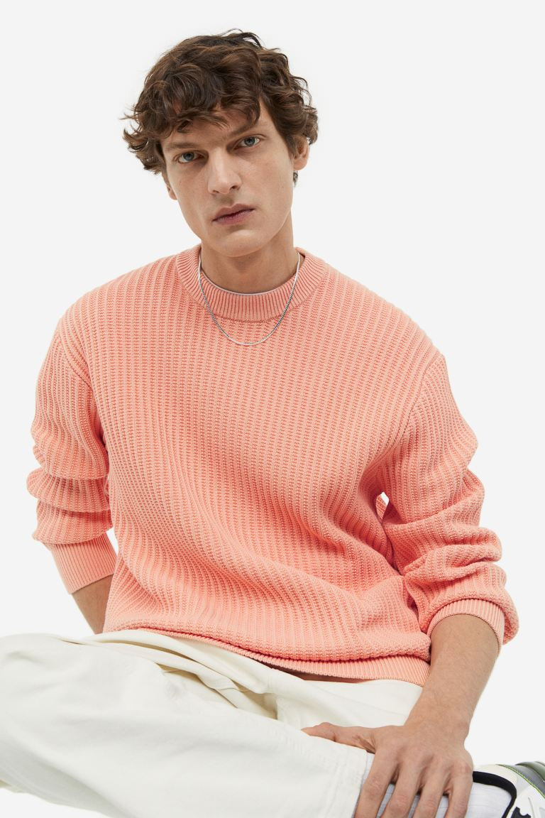 Relaxed-fit jumper in a soft cotton knit with a round, rib-trimmed neckline, dropped shoulders and long sleeves. Wide ribbing at the cuffs and hem.